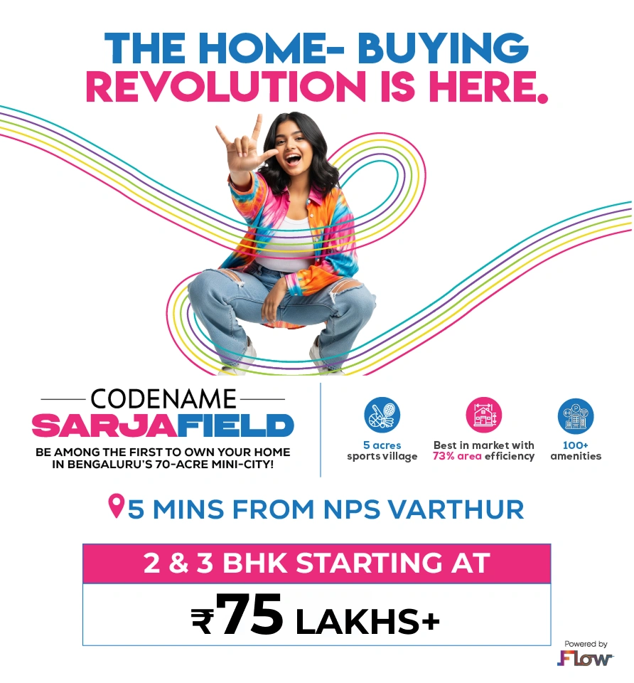 We call it Codename: SarjaField. Welcome to the 70-acre integrated township envisioned as Bengaluru's next big landmark in the thriving East corridor. Nestled in the Golden Triangle between Whitefield, Sarjapur, and Varthur, it brings together the best of urban convenience, community living, and sustainable design.